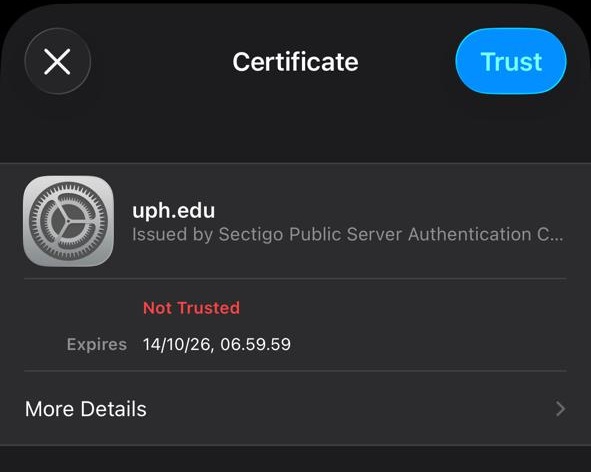 - Tap Accept/trust certificate to get connected.