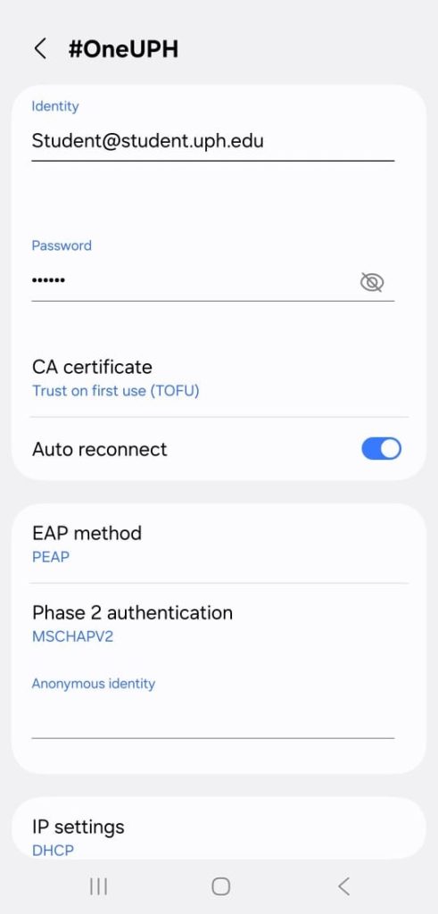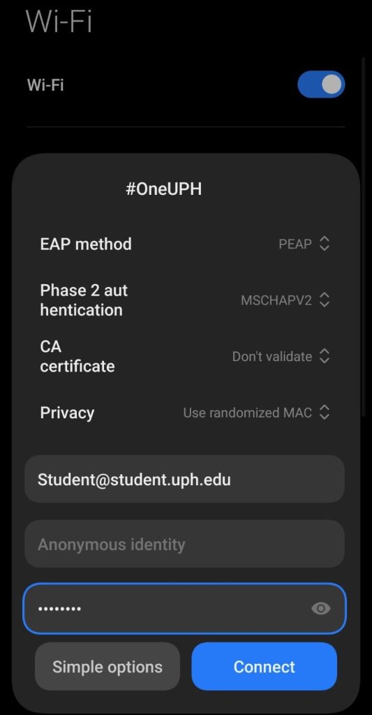 2. #myUPH , Wi Fi network reserved for official UPH office and institutional devices
