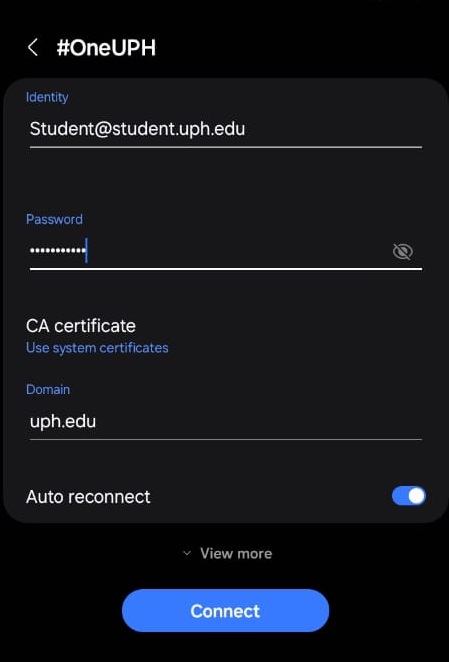 Follow the steps below to connect to #oneUPH