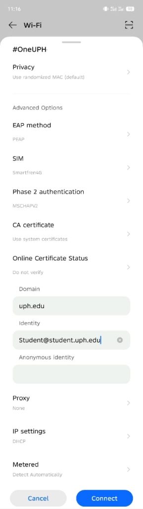 1. oneUPH , Wi Fi network for UPH students, faculty, and staff